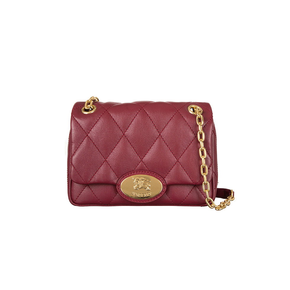 Μπορντό δερμάτινη shoulder bag με χρυσή αλυσίδα, Burberry