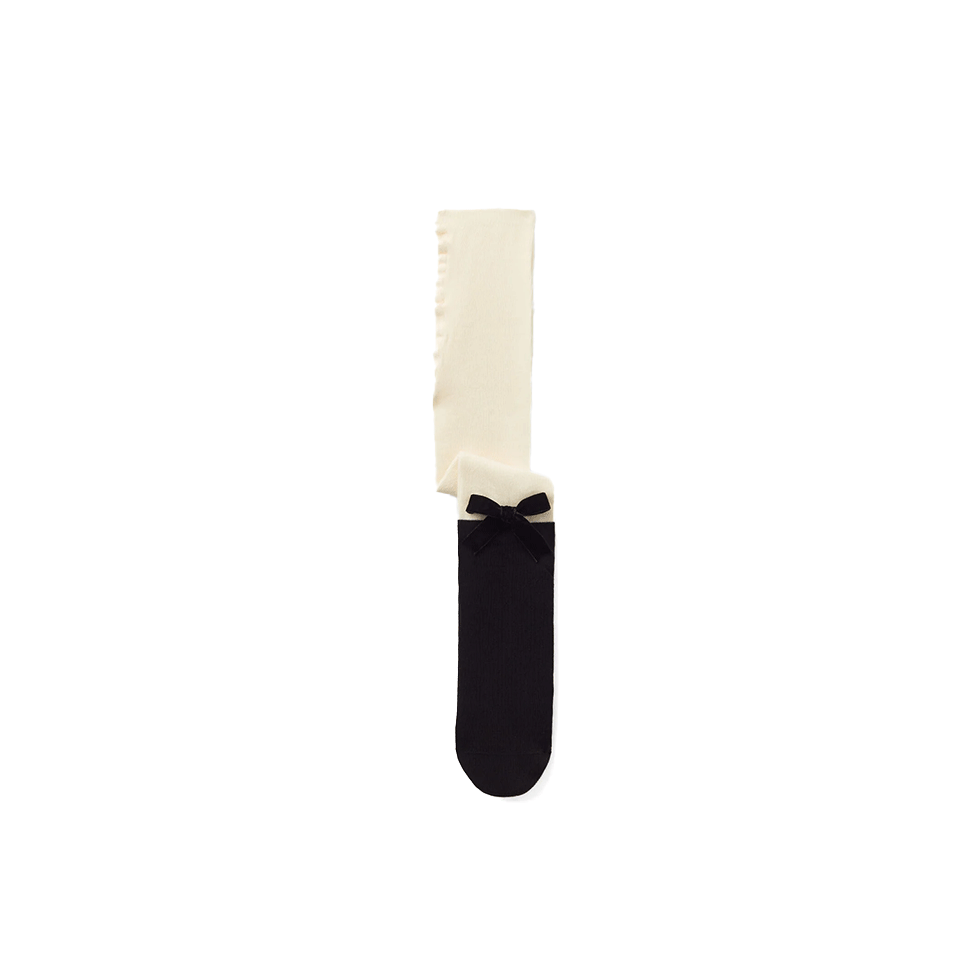 Ασπρόμαυρο καλσόν για κορίτσια από βαμβάκι με εφέ ψηλής κάλτσας