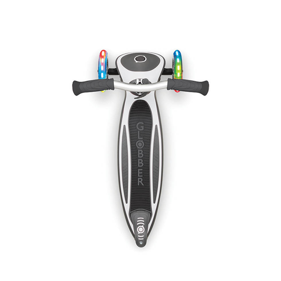 Η σειρά Elite Master Lights από την Globber ξεχωρίζει από το φαρδύ deck με υψηλής ποιότητας μαλακό αφρώδες υλικό EVA, το ρυθμιζόμενο σε 5 ύψη τιμόνι και το πατενταρισμένο σύστημα αναδίπλωσης για εύκολη μεταφορά! Το χρώμα του είναι light grey και διαθέτει ενισχυμένο μεταλλικό σκελετό, μακρύ πίσω φρένο, φαρδύ deck για σταθερή κύλιση και εντυπωσιακούς τροχούς με LED φωτισμό που θα ενθουσιάσουν!