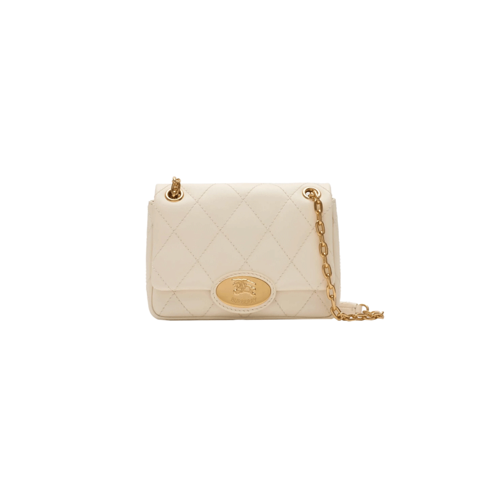 Aνοιχτή beige δερμάτινη τσάντα χιαστί με χρυσές λεπτομέρειες, Burberry