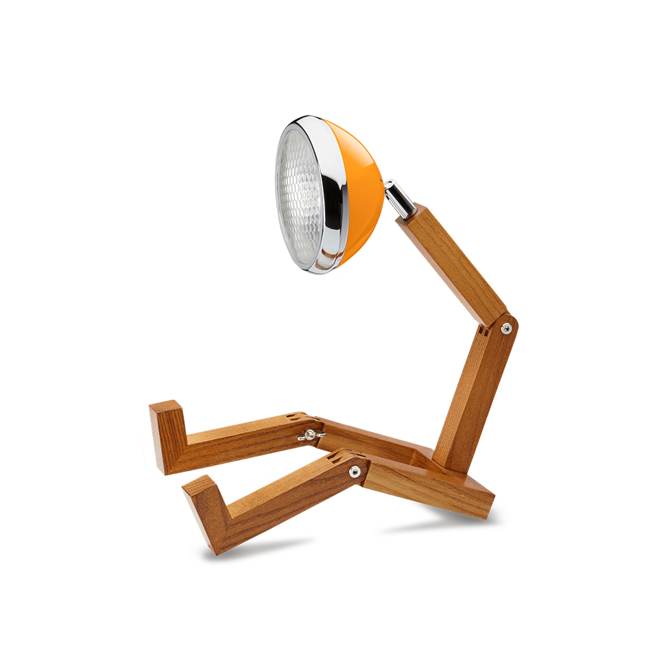 Επιτραπέζιο ξύλινο φωτιστικό «MR WATTSON». Χειροποίητο φωτιστικό LED με σώμα από ξύλο και εύκαμπτες αρθρώσεις που το βοηθούν να παίρνει ότι σχήμα σας βολεύει, ενώ το κεφάλι του είναι εμπνευσμένο από τον προβολέα της Vespa του 1946. Διαστάσεις: 15.5 x 27.6 x 18 εκ.