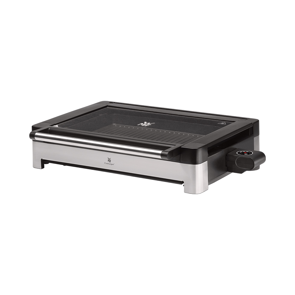 Σχεδιασμός υψηλής ποιότητας με προστατευτικό γυάλινο καπάκι για υγιεινό μαγείρεμα σε εσωτερικούς χώρους. Απολαύστε το ψήσιμο και μέσα στο σπίτι! Μαρινάρετε και ψήστε ότι επιθυμείτε με την Γκριλιέρα Lono με θερμομονωτικό περίβλημα από υψηλής ποιότητας Cromargan matt και γυάλινο καπάκι. Χάρη στα 2.200W, το ψήσιμο του κρέατος, των ψαριών, των λαχανικών και των συναφών θα είναι σίγουρα μια γευστική και αρωματική επιτυχία. Ένα θερμομονωτικό, μεγάλο, αποσπώμενο που ασφαλίζει γυάλινο καπάκι από γυαλί ασφαλείας WMF, επιτρέπει το ψήσιμο ζουμερών και αρωματικών φαγητών.