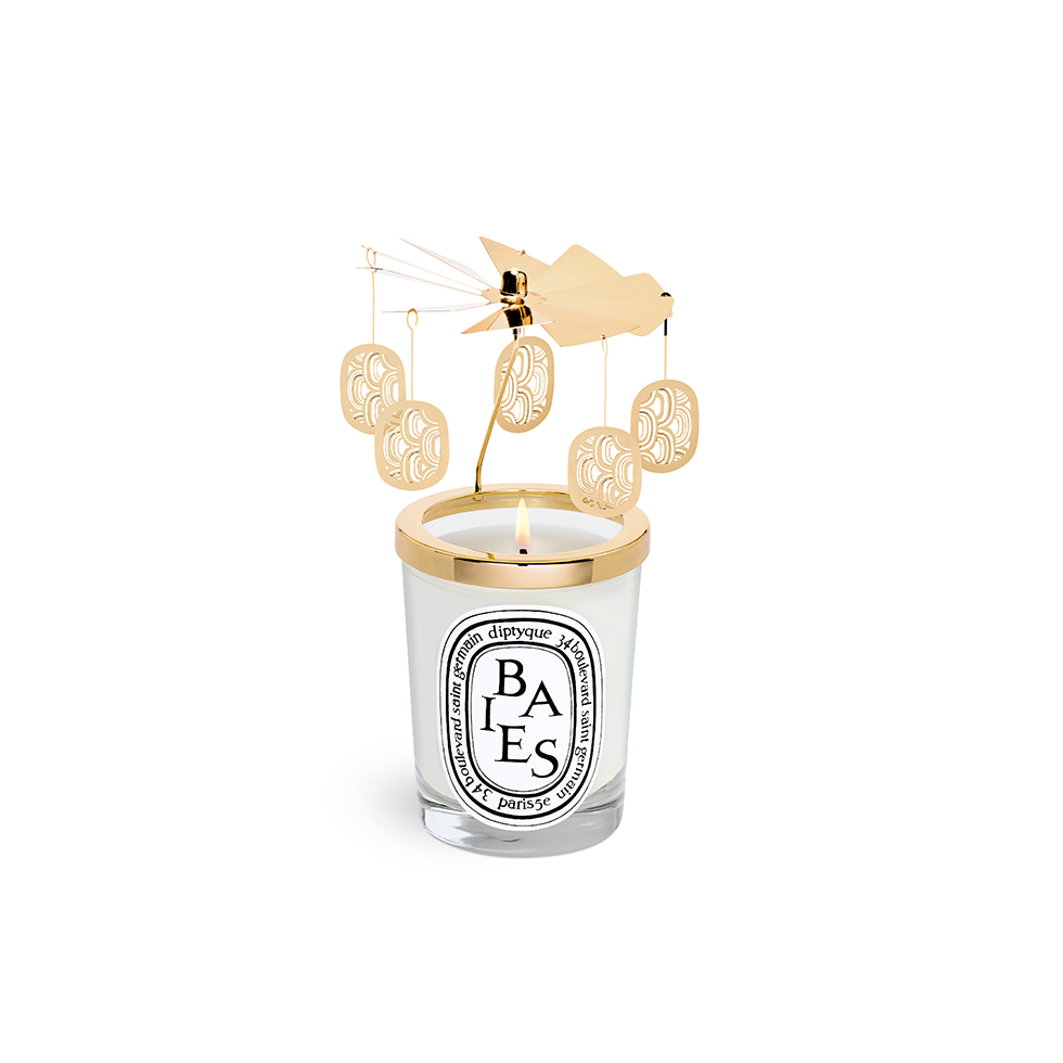 Σαν αστέρια γύρω από τον ήλιο, τα χρυσά γούρια του καρουζέλ περιστρέφονται γύρω από τη φλόγα. Φέτος, τα γούρια στολίζονται με μυριάδες εμβληματικά οβάλ της Diptyque: ντελικάτα μοτίβα που κάνουν το φως να χορεύει σε μια κοσμική λάμψη.