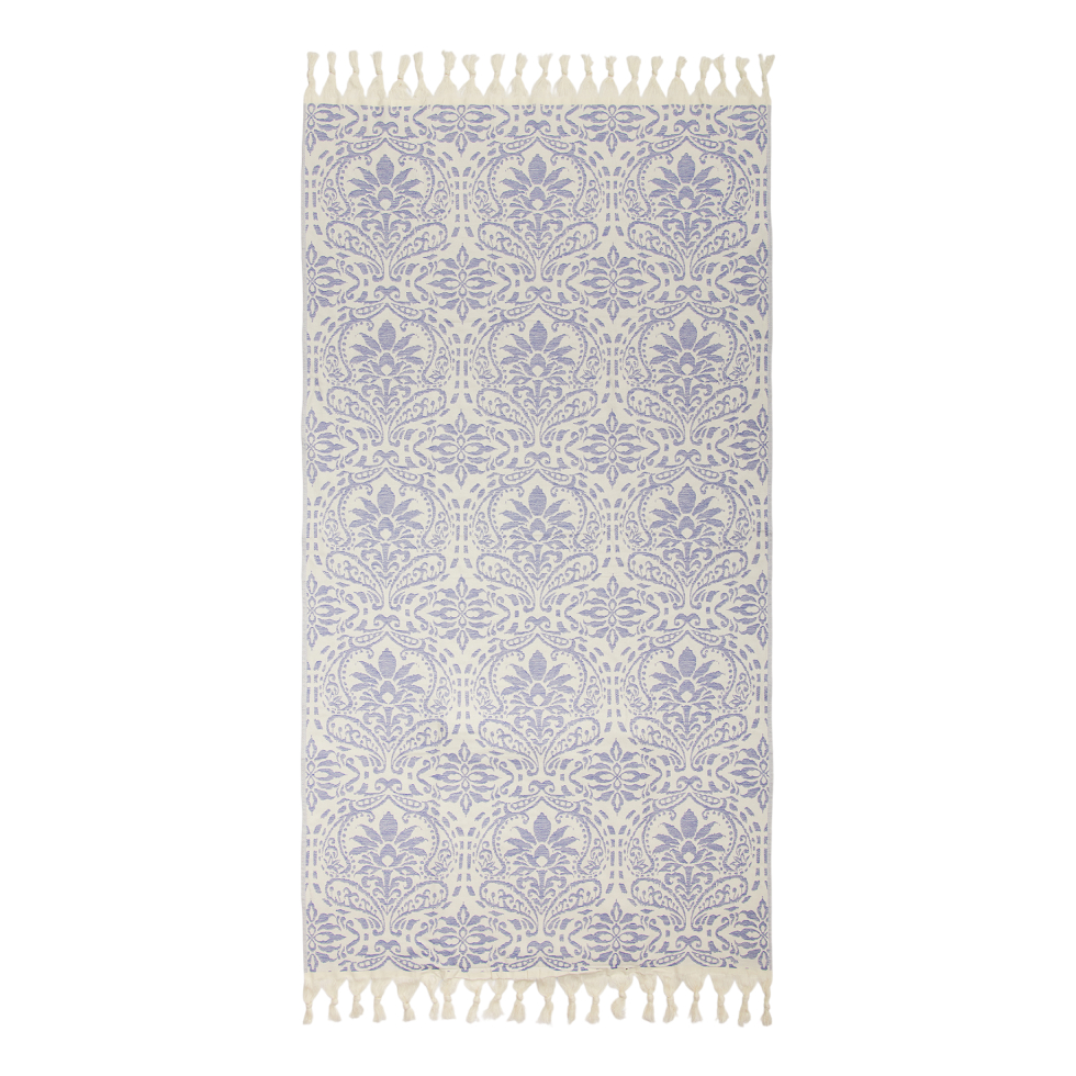 Λιλά πετσέτα θαλάσσης με floral σχέδιο και κρόσσια
