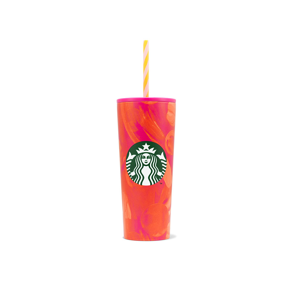 Ροζ ανοξείδωτο ποτήρι με πορτοκαλί σχέδια για κρύα ροφήματα