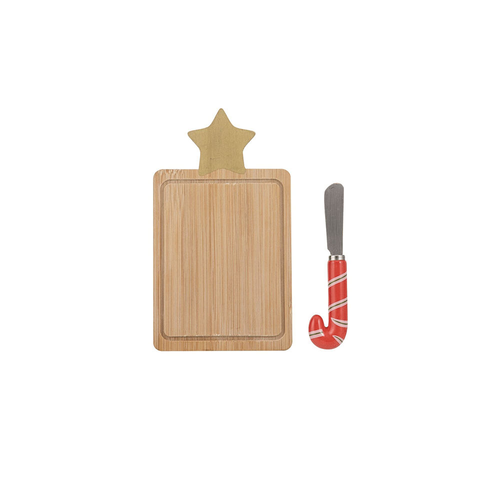 Πιατέλα μπαμπού 19x11cm και μαχαίρι τυριού festive fun σετ 2 τεμαχίων