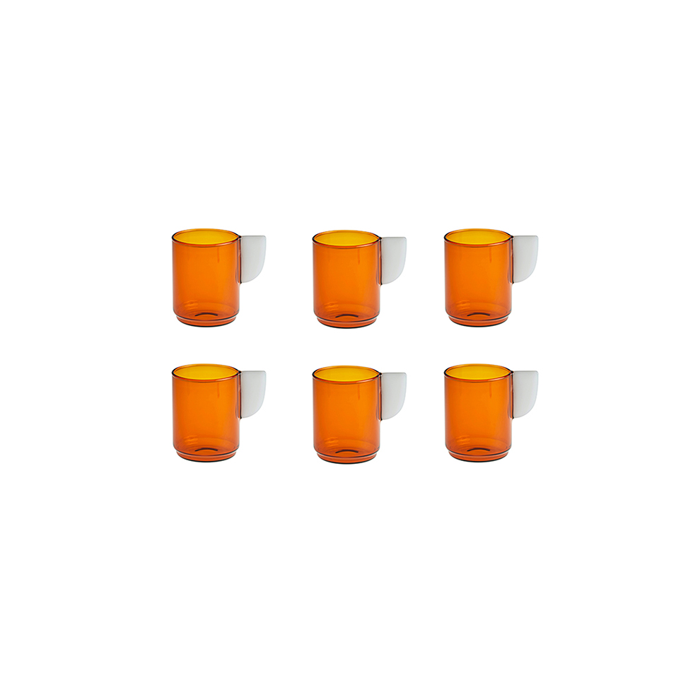 Πορτοκαλί γυάλινα φλυτζάνια σετ έξι τεμαχίων. Μια πρόταση που θα προσφέρει μια νότα χαράς και χρώματος στην κουζίνα σας.